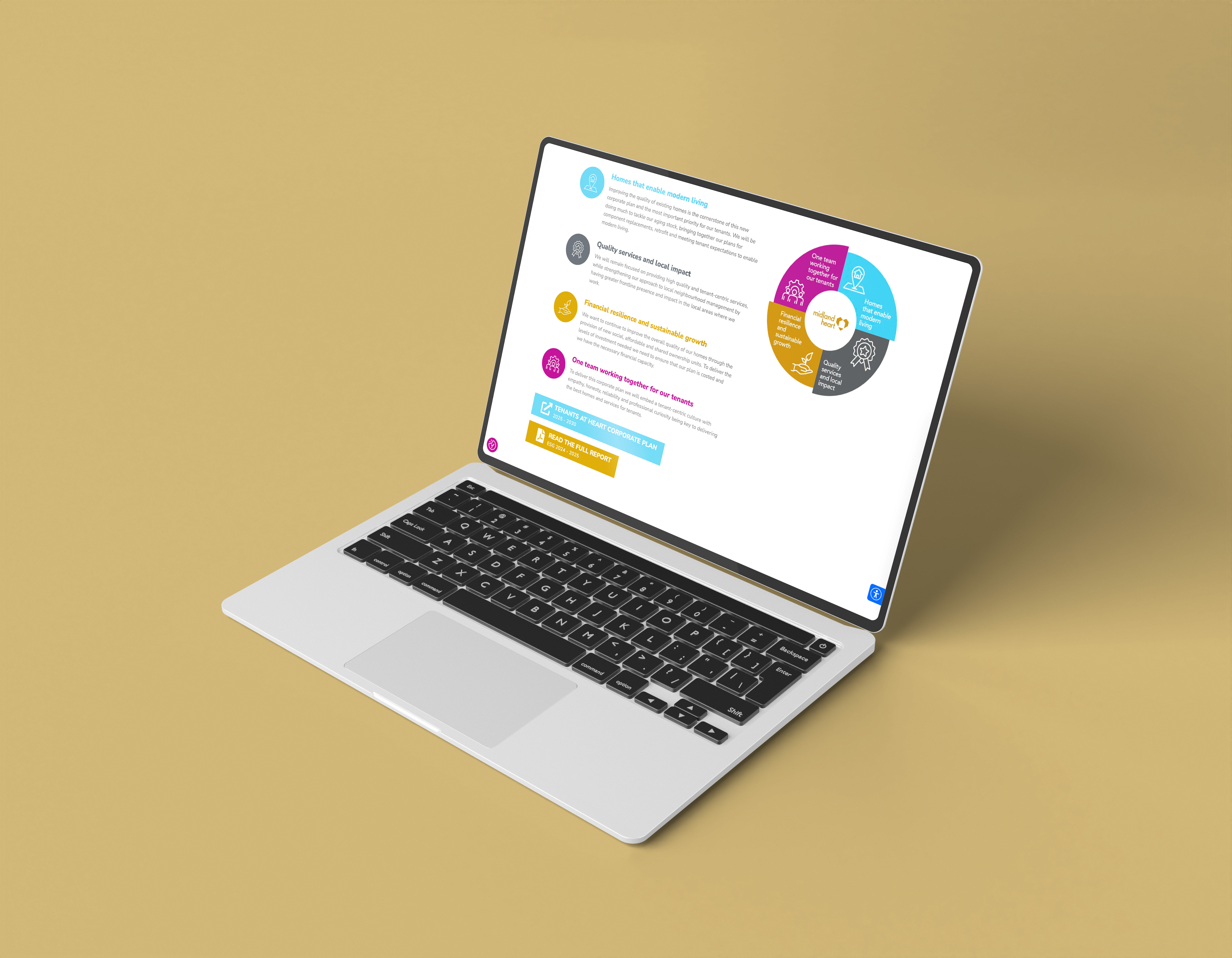 Our ongoing work reflects a commitment to combining design, functionality, and sustainability, helping Midland Heart communicate their ESG performance clearly and responsibly.